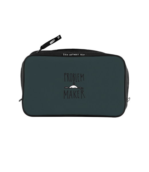 UAX Unisex sizes XL cosmetic bag with printing and pocket with design 1385 PROBLEM MAKER in color GREY INK