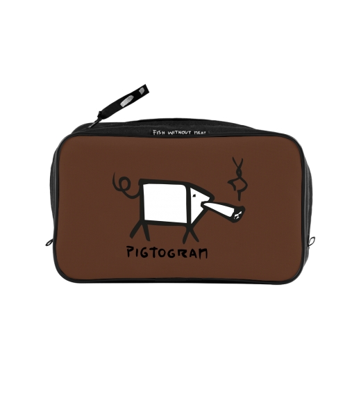 UAX Unisex sizes XL cosmetic bag with printing and pocket with design 367 PIGTOGRAM in color BROWN SUGAR