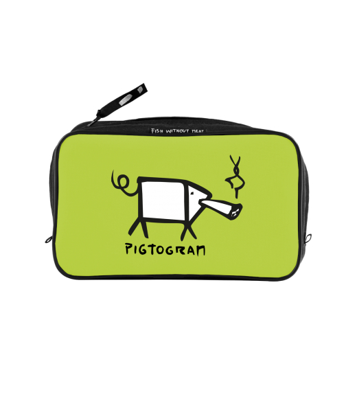 UAX Unisex sizes XL cosmetic bag with printing and pocket with design 367 PIGTOGRAM in color GREEN LIMET
