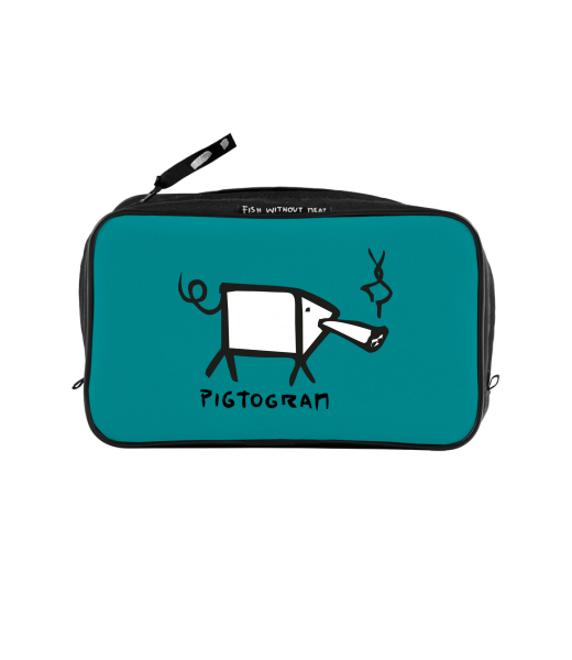 UAX Unisex sizes XL cosmetic bag with printing and pocket with design 367 PIGTOGRAM in color TURQUOISE
