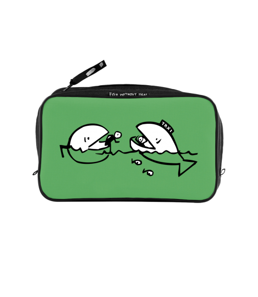 UAX Unisex sizes XL cosmetic bag with printing and pocket with design 385 FISH TAXI in color BRIGHT GREEN