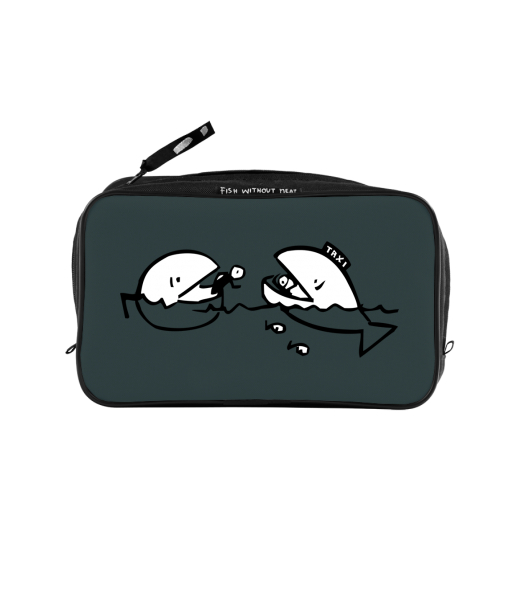 UAX Unisex sizes XL cosmetic bag with printing and pocket with design 385 FISH TAXI in color GREY INK