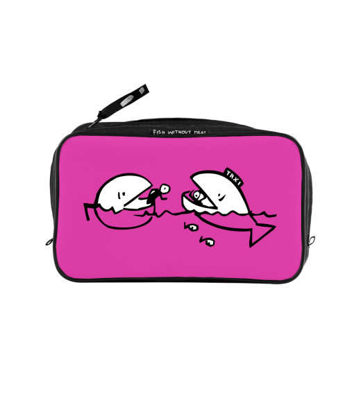 UAX Unisex sizes XL cosmetic bag with printing and pocket with design 385 FISH TAXI in color INDIAN LILA