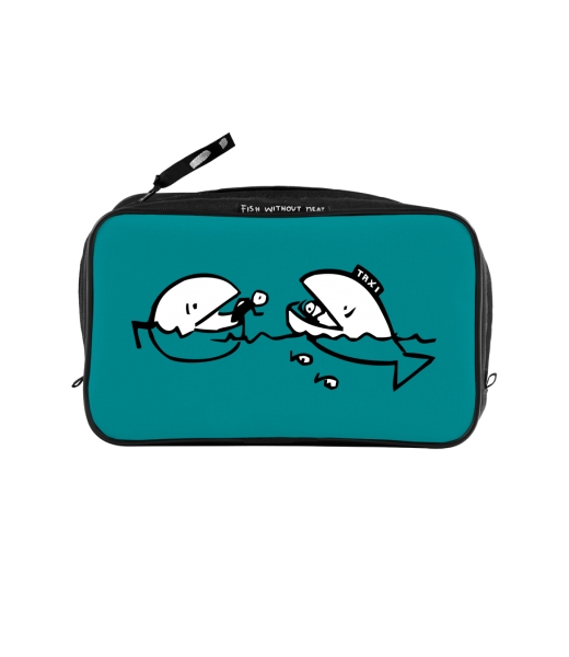 UAX Unisex sizes XL cosmetic bag with printing and pocket with design 385 FISH TAXI in color TURQUOISE