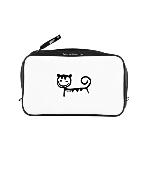 UAX Unisex sizes XL cosmetic bag with printing and pocket with design 476 TIGER in color WHITE