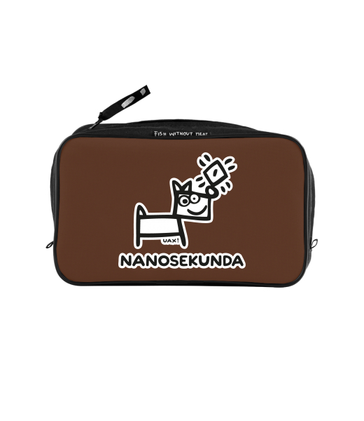 UAX Unisex sizes XL cosmetic bag with printing and pocket with design 516 NANOSEKUNDA in color BROWN SUGAR