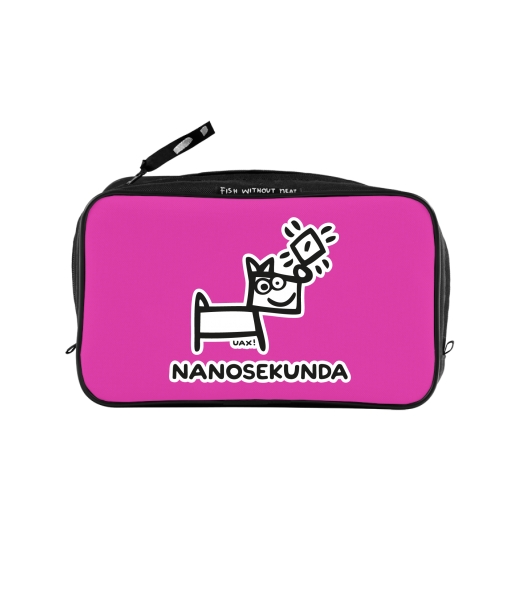 UAX Unisex sizes XL cosmetic bag with printing and pocket with design 516 NANOSEKUNDA in color INDIAN LILA