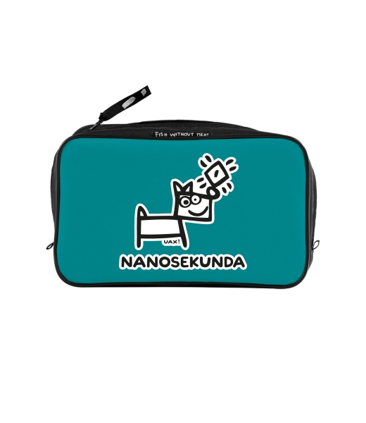 UAX Unisex sizes XL cosmetic bag with printing and pocket with design 516 NANOSEKUNDA in color TURQUOISE