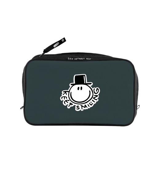 UAX Unisex sizes XL cosmetic bag with printing and pocket with design 517 KEEP SMILING in color GREY INK