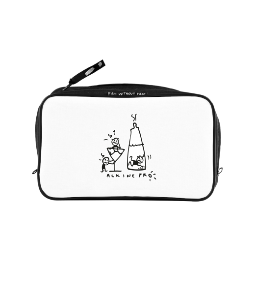UAX Unisex sizes XL cosmetic bag with printing and pocket with design 518 ALKINE PRO in color WHITE