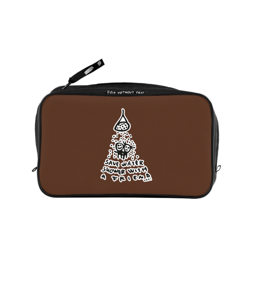 UAX Unisex sizes XL cosmetic bag with printing and pocket with design 519 SAVE WATER in color BROWN SUGAR