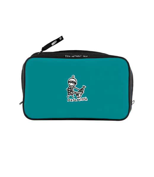 UAX Unisex sizes XL cosmetic bag with printing and pocket with design 523 MASOCHYSTA in color TURQUOISE