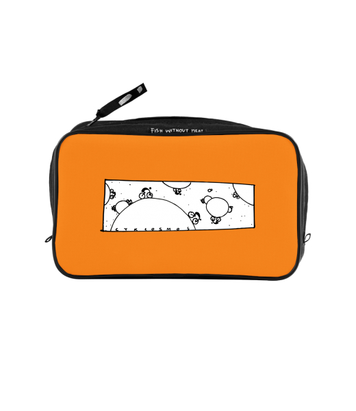 UAX Unisex sizes XL cosmetic bag with printing and pocket with design 55 CYCLOCOSMOS in color SIGNAL ORANGE
