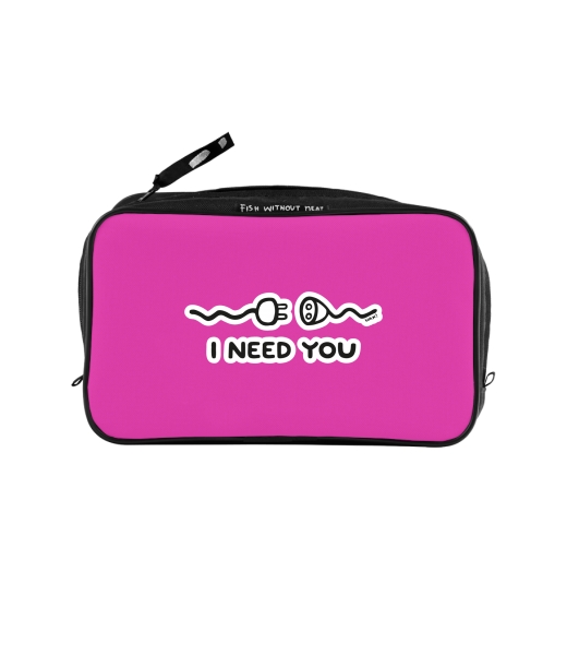 UAX Unisex sizes XL cosmetic bag with printing and pocket with design 581 I NEED YOU in color INDIAN LILA