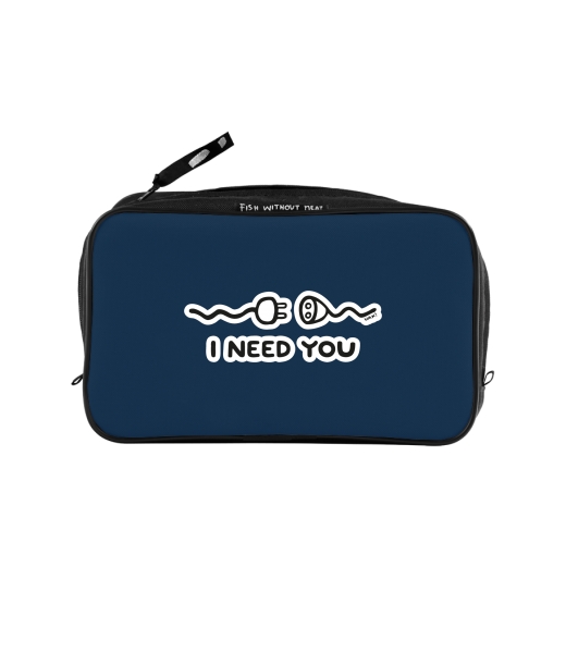 UAX Unisex sizes XL cosmetic bag with printing and pocket with design 581 I NEED YOU in color MIDNIGHT BLUE