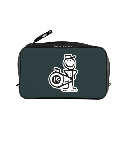 UAX Unisex sizes XL cosmetic bag with printing and pocket with design 591 MASTIFLINTA in color GREY INK