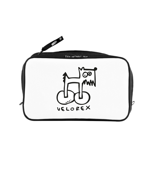 UAX Unisex sizes XL cosmetic bag with printing and pocket with design 598 VELOREX in color WHITE