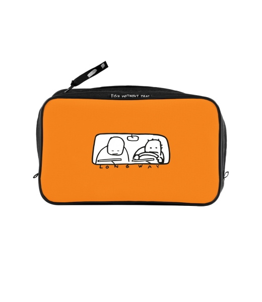 UAX Unisex sizes XL cosmetic bag with printing and pocket with design 84 LONG WAY in color SIGNAL ORANGE
