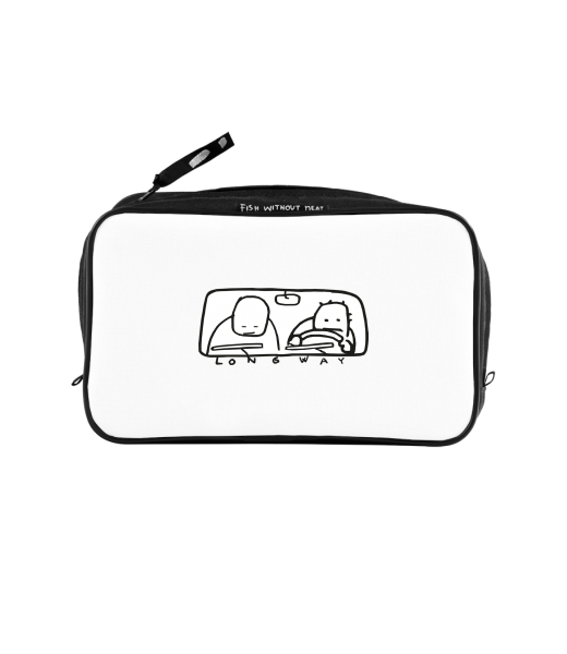 UAX Unisex sizes XL cosmetic bag with printing and pocket with design 84 LONG WAY in color WHITE