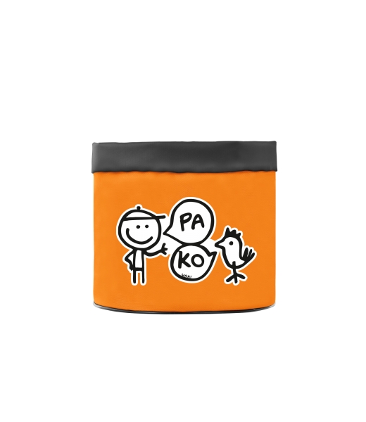 Designes supplement container in a flowerpot with printing. with design 1075 PAKO in color SIGNAL ORANGE