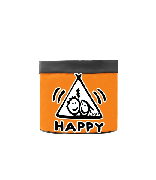 Designes supplement container in a flowerpot with printing. with design 1113 HAPPY in color SIGNAL ORANGE