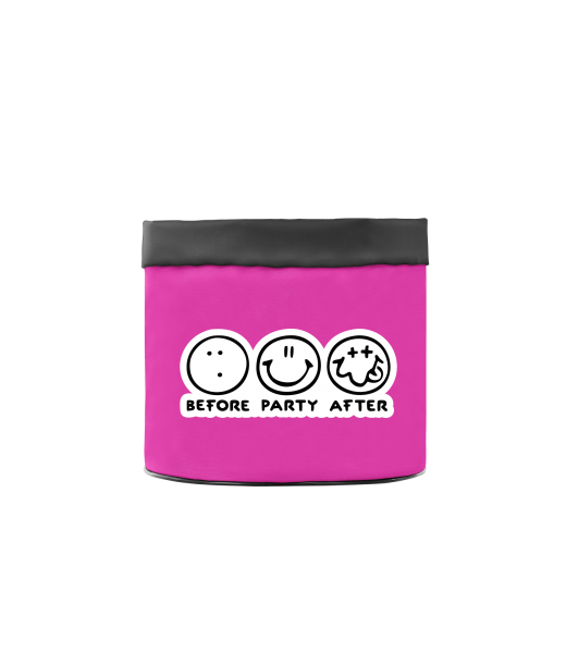 Designes supplement container in a flowerpot with printing. with design 1120 BEFORE PARTY AFTER in color INDIAN LILA
