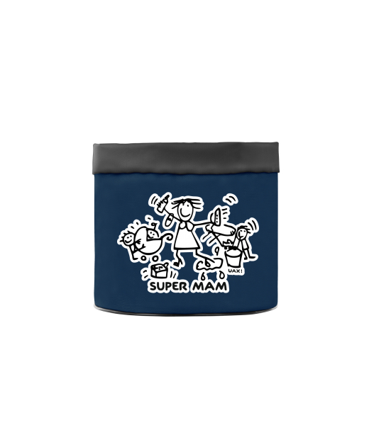 Designes supplement container in a flowerpot with printing. with design 1126 SUPER MAM in color MIDNIGHT BLUE