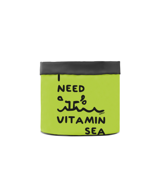 Designes supplement container in a flowerpot with printing. with design 1132 I NEED VITAMIN SEA in color GREEN LIMET