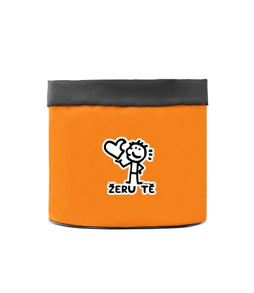Designes supplement container in a flowerpot with printing. with design 1244 ŽERU TĚ in color SIGNAL ORANGE
