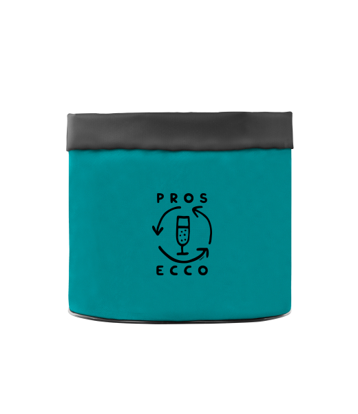 Designes supplement container in a flowerpot with printing. with design 1321 PROS ECCO in color TURQUOISE