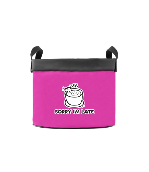 Designes container in a flowerpot 30cm with printing with design 1087 SORRY IM LATE in color INDIAN LILA