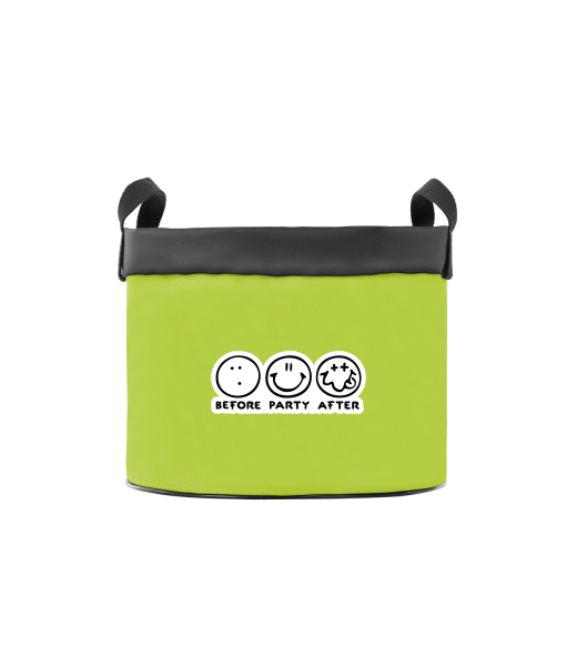 Designes container in a flowerpot 30cm with printing with design 1120 BEFORE PARTY AFTER in color GREEN LIMET