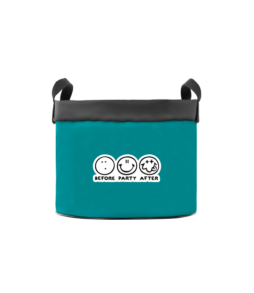 Designes container in a flowerpot 30cm with printing with design 1120 BEFORE PARTY AFTER in color TURQUOISE