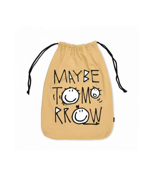 Large cotton pouch with design 1001 MAYBE TOMORROW in color MUSTARD
