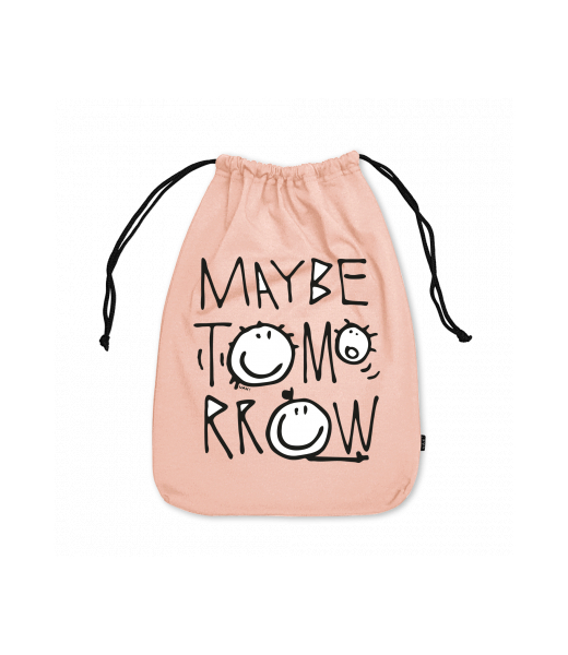 Large cotton pouch with design 1001 MAYBE TOMORROW in color PEACH