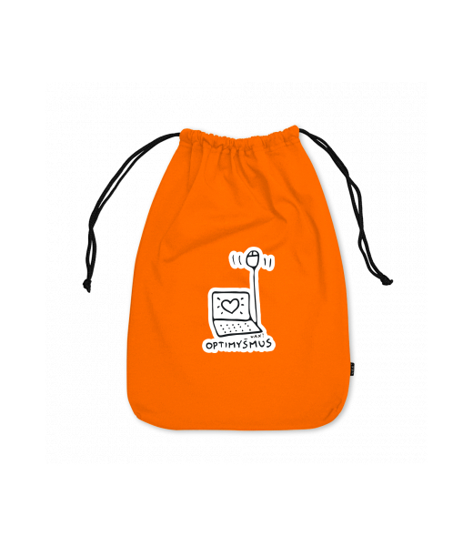 Large cotton pouch with design 1040 OPTIMYŠMUS in color SIGNAL ORANGE