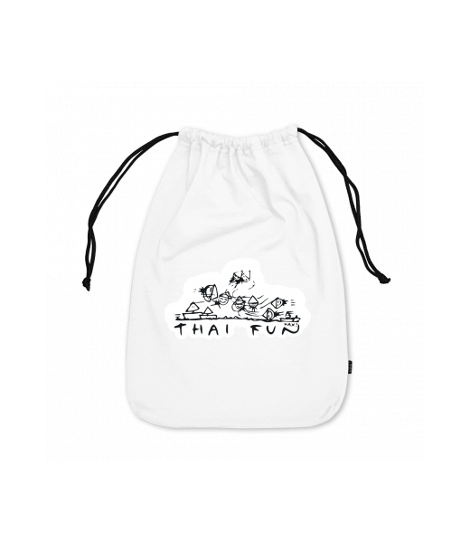 Large cotton pouch with design 1041 THAI FUN in color WHITE