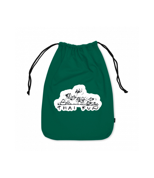 Large cotton pouch with design 1041 THAI FUN in color UNIVERSITY GREEN