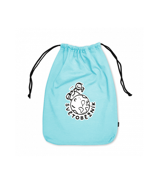 Large cotton pouch with design 1047 SVĚTOBĚŽNÍK in color PASTEL BLUE