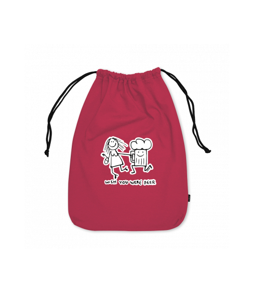 Large cotton pouch with design 1049 WISH YOU WERE BEER in color CHILLY PEPPER RED