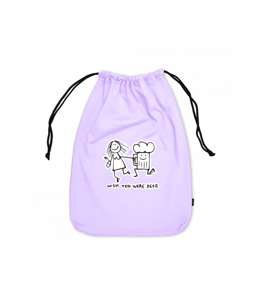 Large cotton pouch with design 1049 WISH YOU WERE BEER in color LAVENDER