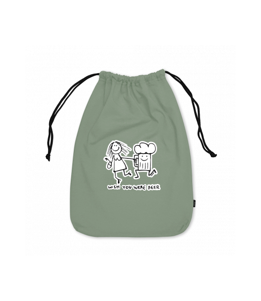 Large cotton pouch with design 1049 WISH YOU WERE BEER in color OLIVA