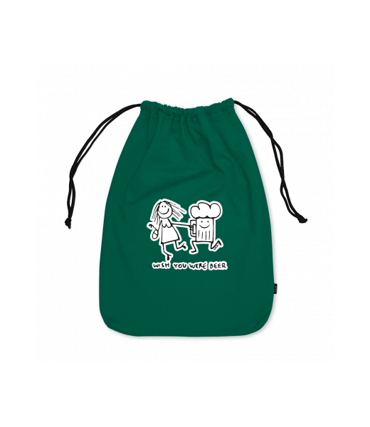 Large cotton pouch with design 1049 WISH YOU WERE BEER in color UNIVERSITY GREEN