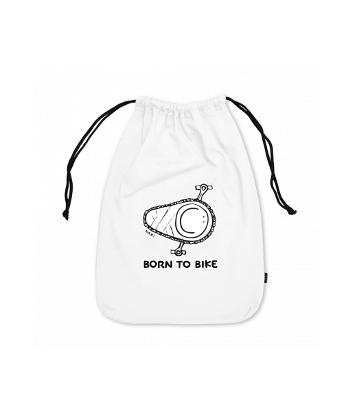 Large cotton pouch with design 1074 BORN TO BIKE in color WHITE