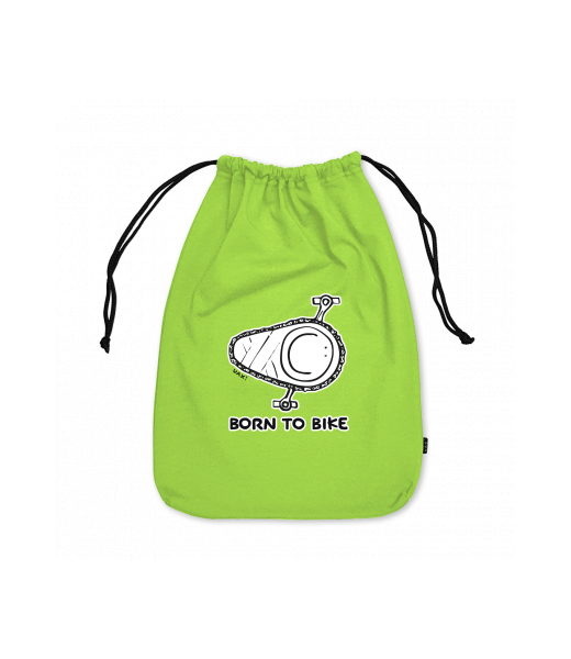 Large cotton pouch with design 1074 BORN TO BIKE in color PARROT GREEN