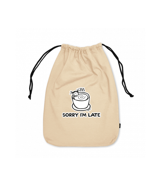 Large cotton pouch with design 1087 SORRY IM LATE in color CARAMEL