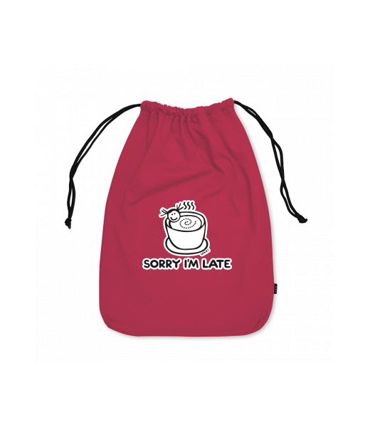 Large cotton pouch with design 1087 SORRY IM LATE in color CHILLY PEPPER RED