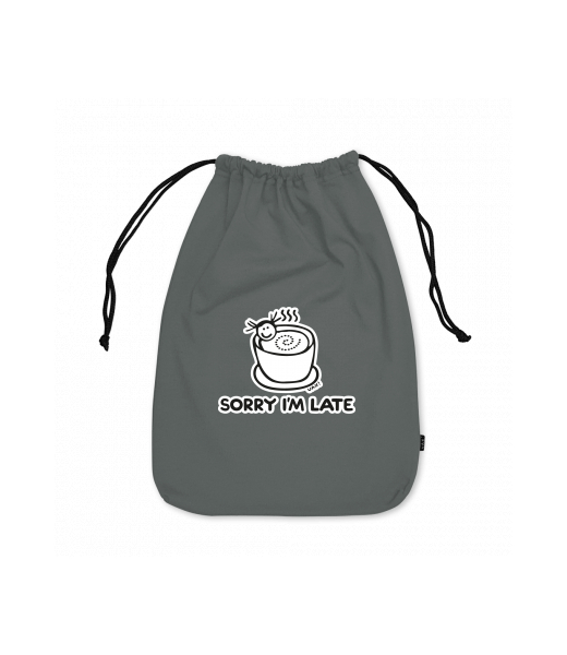 Large cotton pouch with design 1087 SORRY IM LATE in color DARK GRAY