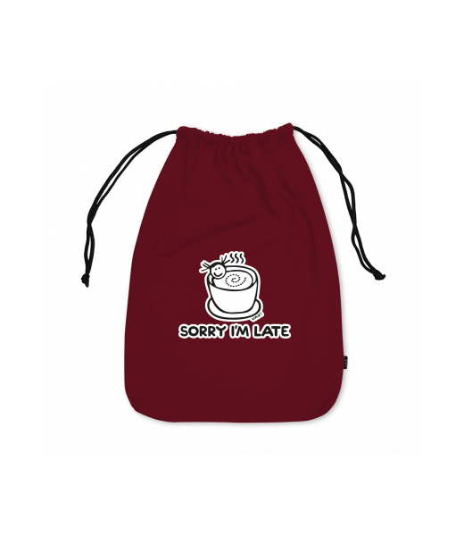 Large cotton pouch with design 1087 SORRY IM LATE in color DARK RED
