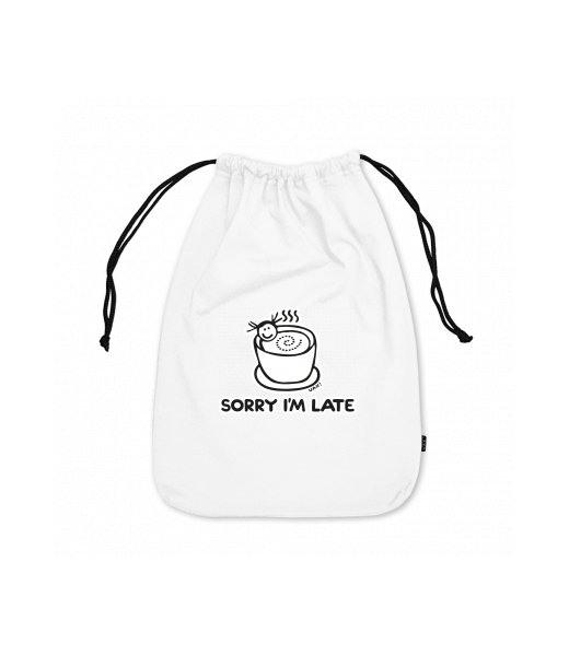 Large cotton pouch with design 1087 SORRY IM LATE in color WHITE